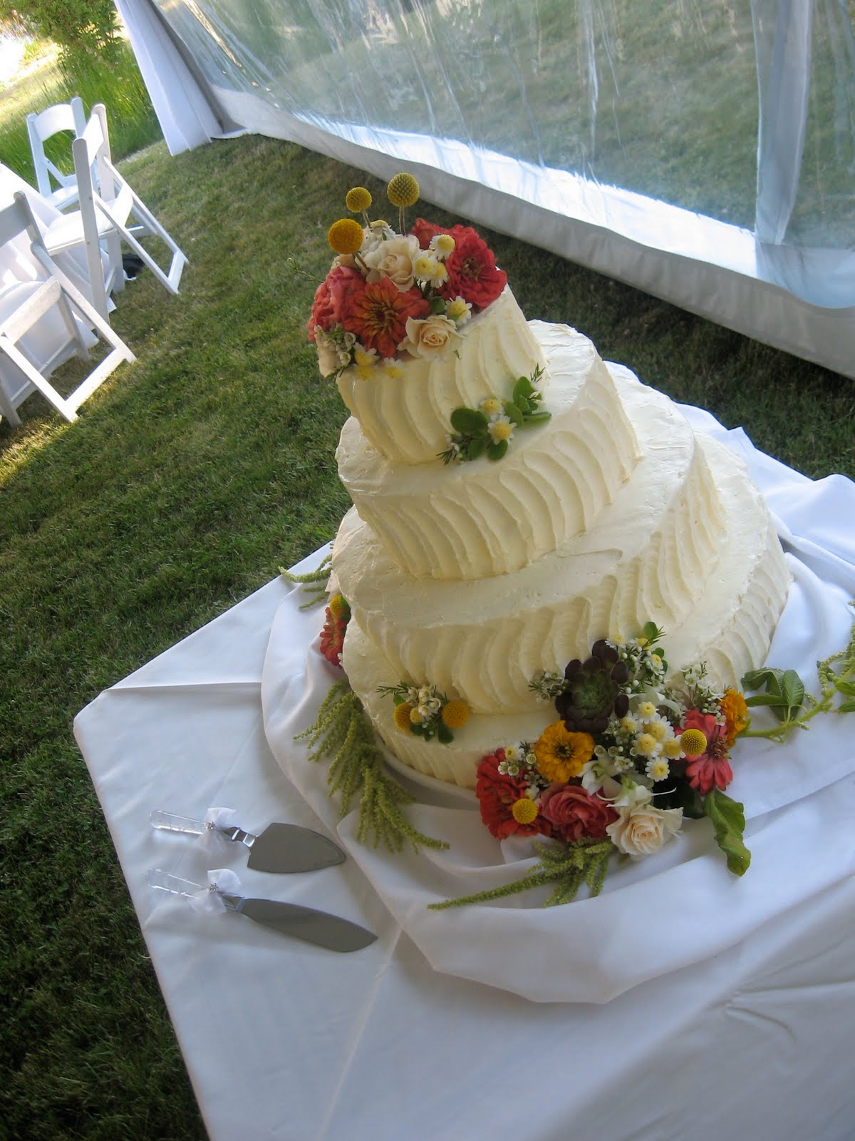 Another Saturday wedding. Perfect weather, everything worked out very well, happy guests, newly weds off to Kaui for a week or so. Annie made a very nice cake. It tasted as good as it looked.